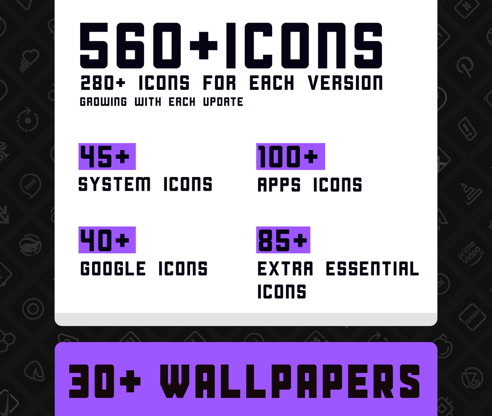 • 560+ ICONS WITH TOP NOTCH QUALITY. (240+ icons for Each Variant)